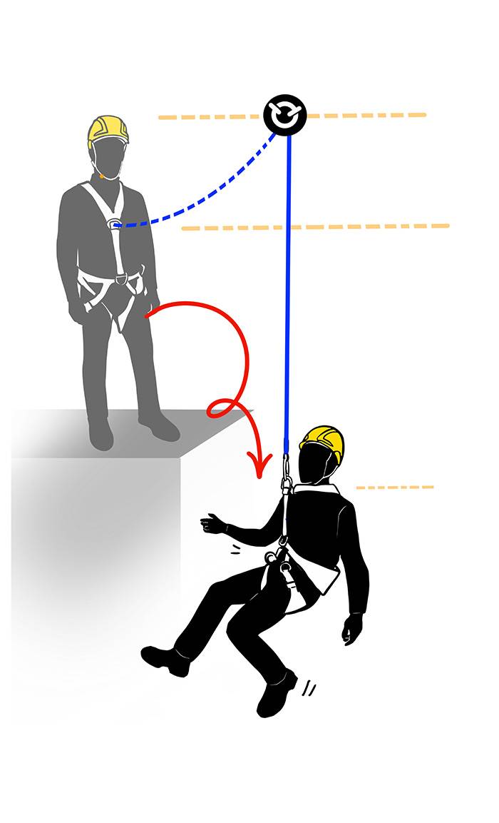 - The length of the fall: The longer the fall, the more energy to be dissipated during the fall. The risk of hitting an obstacle is also greater.