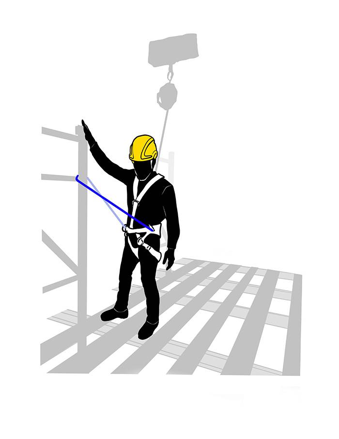 The fall arrest system does not prevent a free fall. Its role is to arrest the fall while limiting the impact force experienced by the user. It must therefore be used with enough clearance to allow for a free fall.