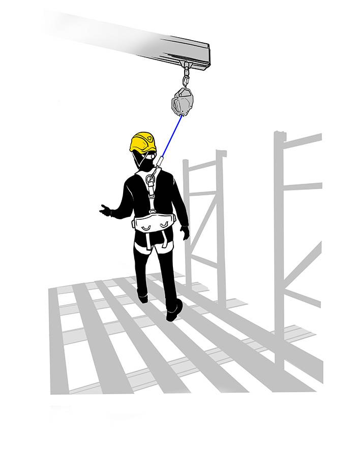 The fall arrest system does not prevent a free fall. Its role is to arrest the fall while limiting the impact force experienced by the user. It must therefore be used with enough clearance to allow for a free fall.
