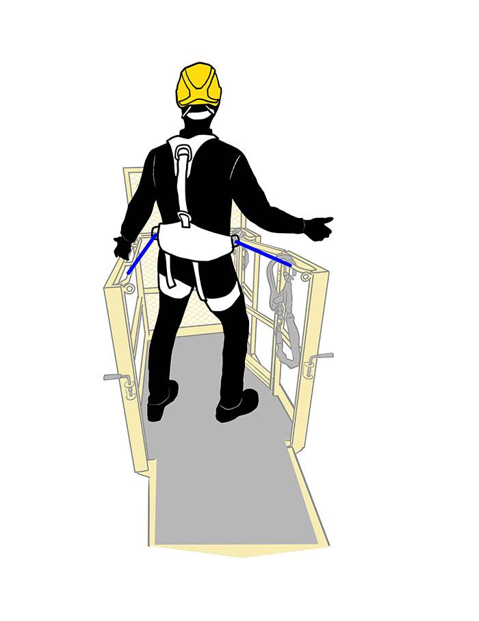 Working alone must be prohibited: a worker may find himself alone at height, but at least one person trained in evacuations should be present and equipped on site.